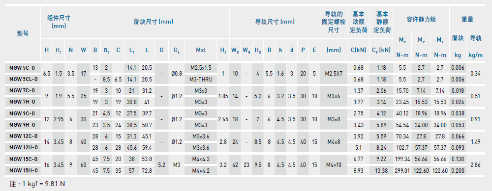 微型直線導(dǎo)軌尺寸表