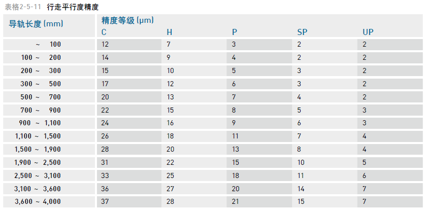 QH 系列直線導軌提供三種標準預壓,可依據用途選擇適當預壓力。