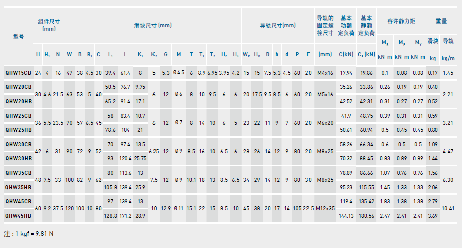 直線導(dǎo)軌QH系列之CB、CC、HB、HC對比