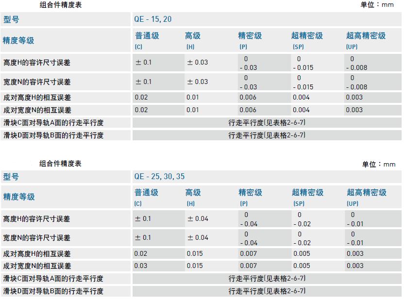 QE系列直線導軌的精度,分為普通、高、精密、超精密、超高精密級共五級,客戶可依設備精度需求選用精度。